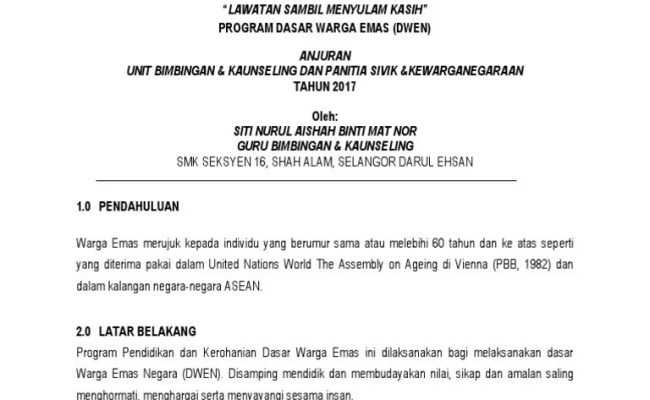 Contoh karangan laporan melawat ke rumah orang tua . Contoh kertas kerja lawatan ke rumah orang tua — kertas.